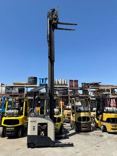 2015 CROWN REACH FORKLIFT, MODEL RM6025-45, 36V ELECTRIC POWERED, 4,500lb BASIC CAPACITY, MONOBOOM MAST (240” Max Lift Height) w/ TILT & SIDE SHIFT, 42” FORKS - INCLUDES CHARGER